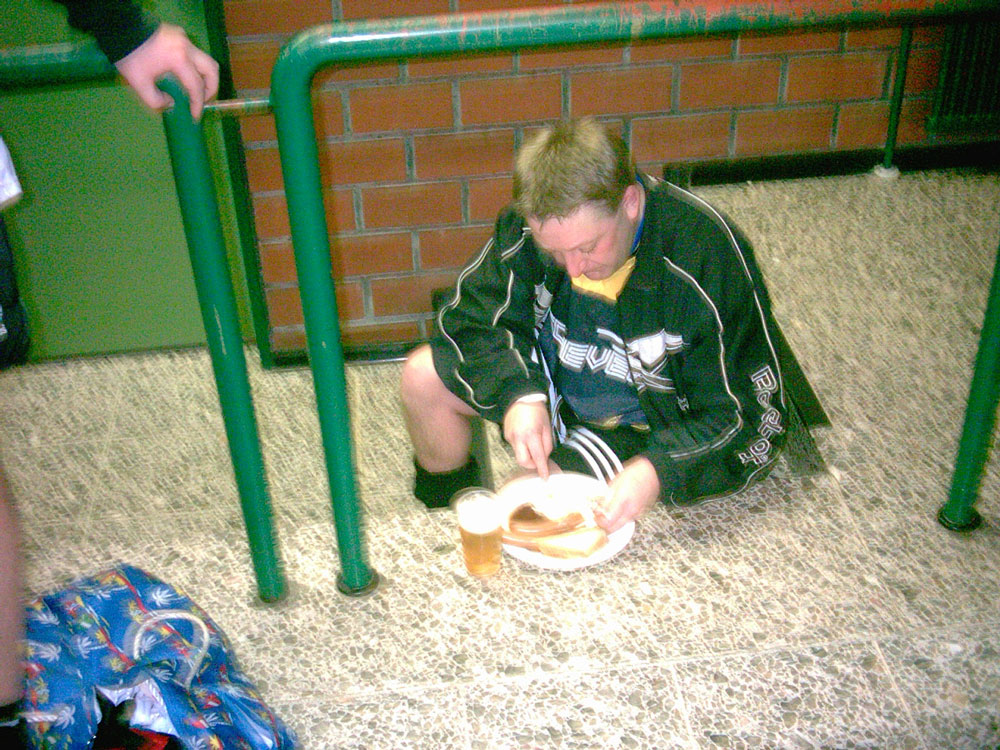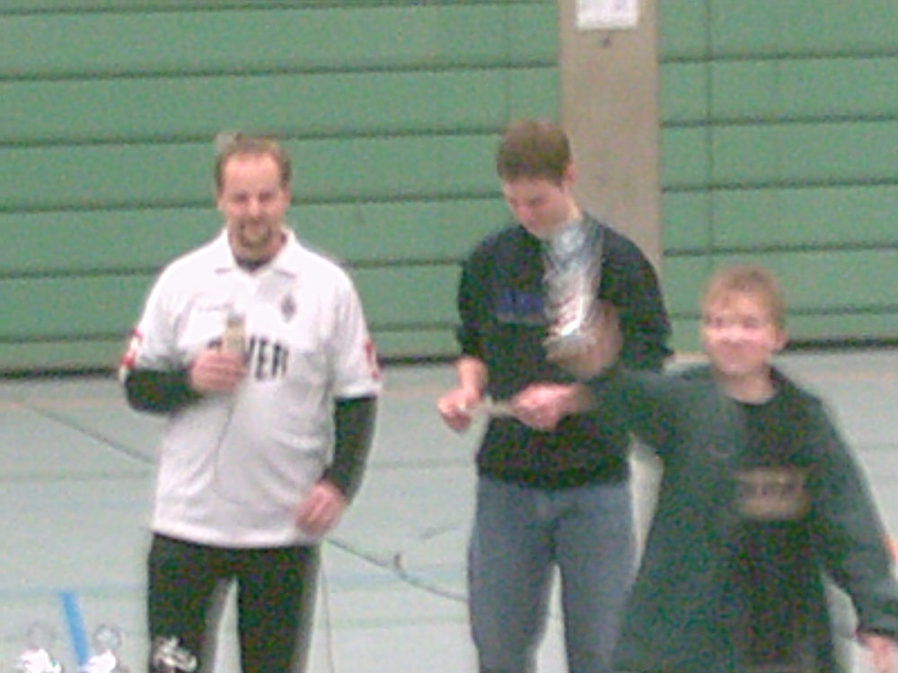 03.01.2004 – Leider lief es sportlich nicht so gut, viele waren noch von Silvester angeschlagen. Einige der anderen Mannschaften hatten scheinbar zu Weihnachten soviel Motivation in Tüten bekommen, dass es teilweise zu richtigen Schlachten kam. Schade!! Mit einem reinen Fan-Club Turnier hatte das nichts mehr zu tun.