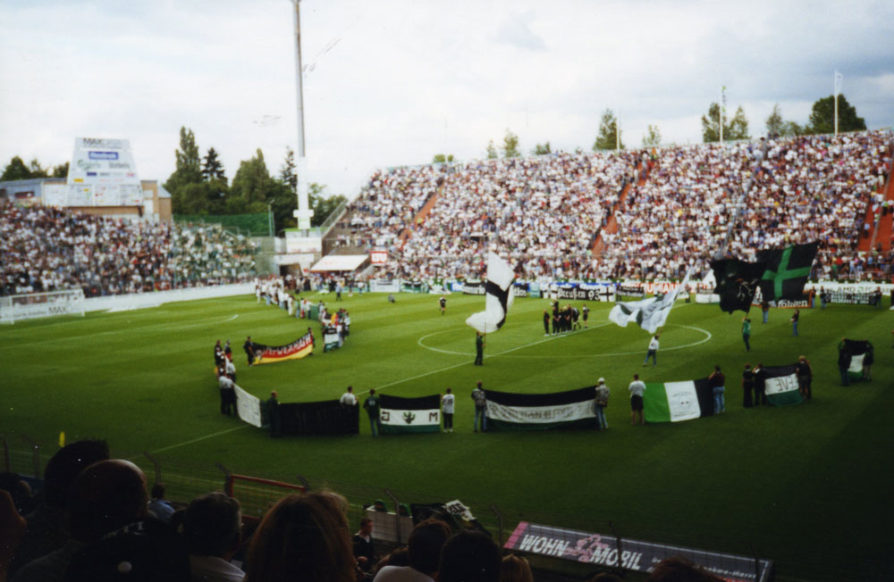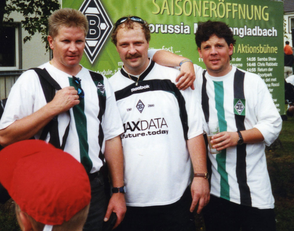 Nach einer internen kurzen Erörterung des „Skandals“ feierten wir dann aber mit unerbittlicher Härte uns selbst gegenüber die Saisoneröffnung Borussias. In der Kaserne hatten sich nach Schätzungen im Laufe des Tages ca. 70.000 Fans versammelt. Eine Bombenstimmung herrschte bei den Auftritten von B.O. und Mickie Krause, der vor (mindestens) 10.000 Promille seinen Gassenhauer „Geh doch zu Hause, du alte Scheiße“! zum Besten gab. Weltklasse und kultverdächtig, der Mann.