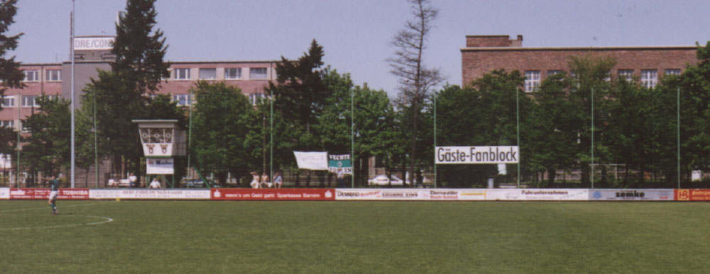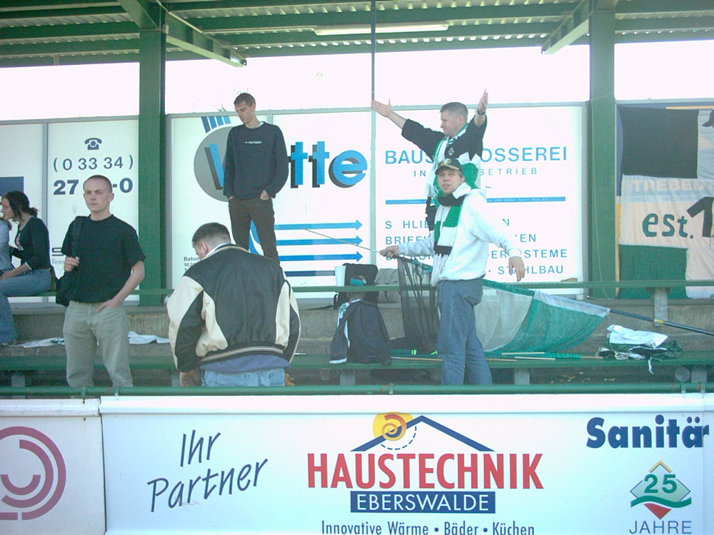 Im Stadion trudelten dann noch Heike, Rubi und Alex ein, die von Hoyerswerda aus nach Eberswalde kamen. Unsere Truppe war somit komplett. Wir machten es uns auf der Haupttribüne im Stehplatz Bereich bequem. Und fortan war es mit der Ruhe und Beschaulichkeit im weiten Rund vorbei. Ich sage nur ein Wort Hexenkessel !!