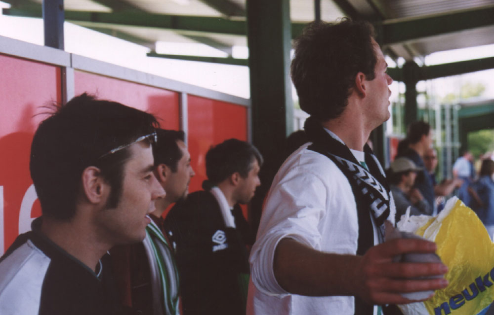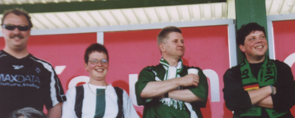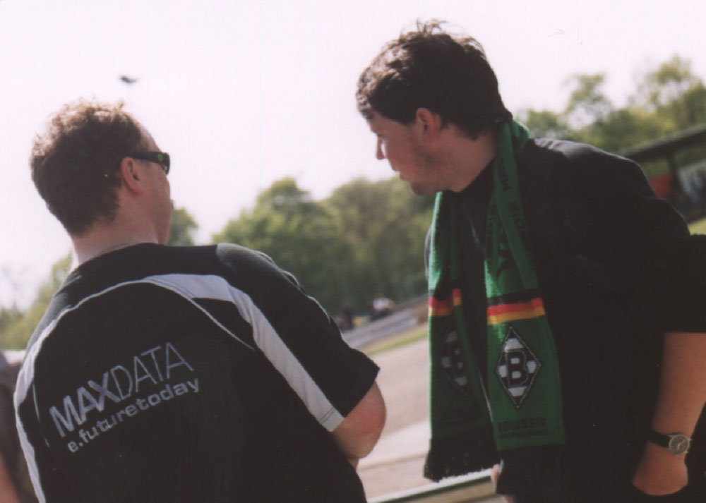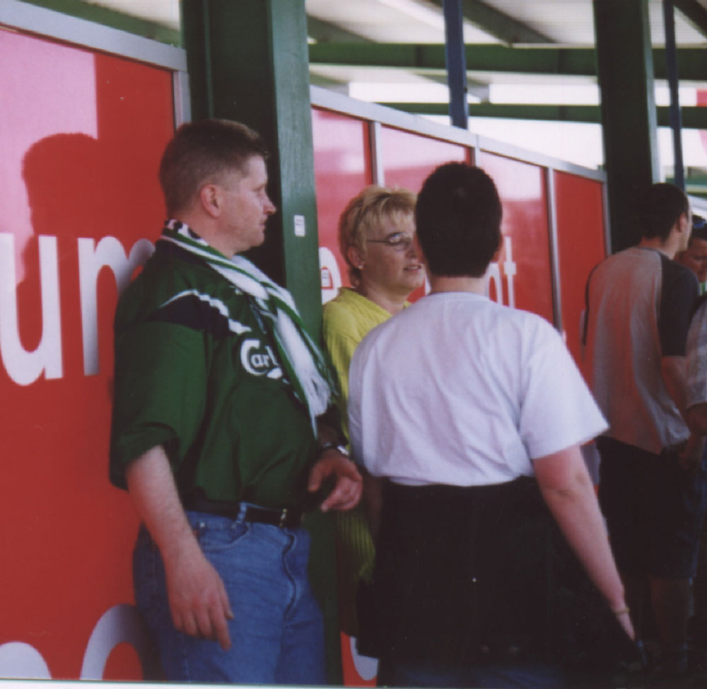 Verabredungs- und standesgemäß wurden wir vom MOTOR- Manger- Gott A.F. und seinen Lakaien vom Bahnhof abgeholt. 1a- Service!! A.F. machte mit uns erst einmal eine Stadt Rundfahrt im Zeitraffer. Um 13:30 Uhr fuhren wir dann wie die Könige durch die sich uns öffnenden Tore des legendären Westend-Stadions. Wer hat das von uns schon einmal mit gemacht? Weltklasse!!